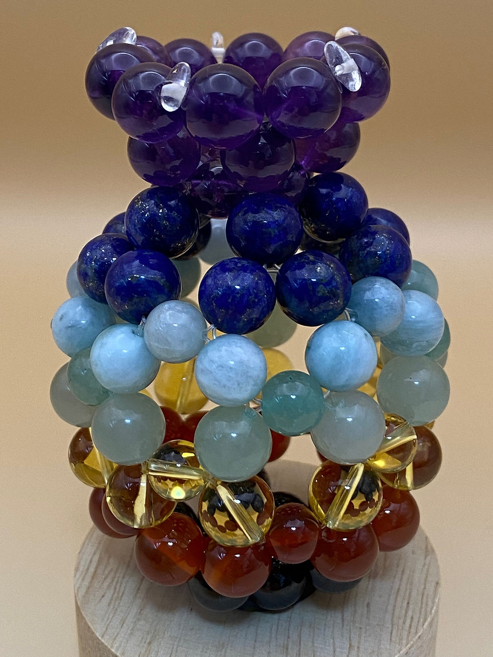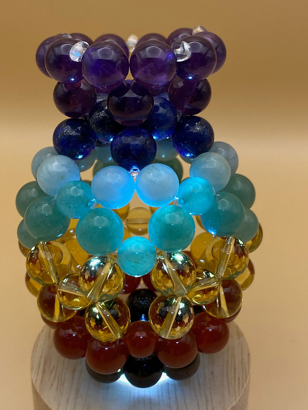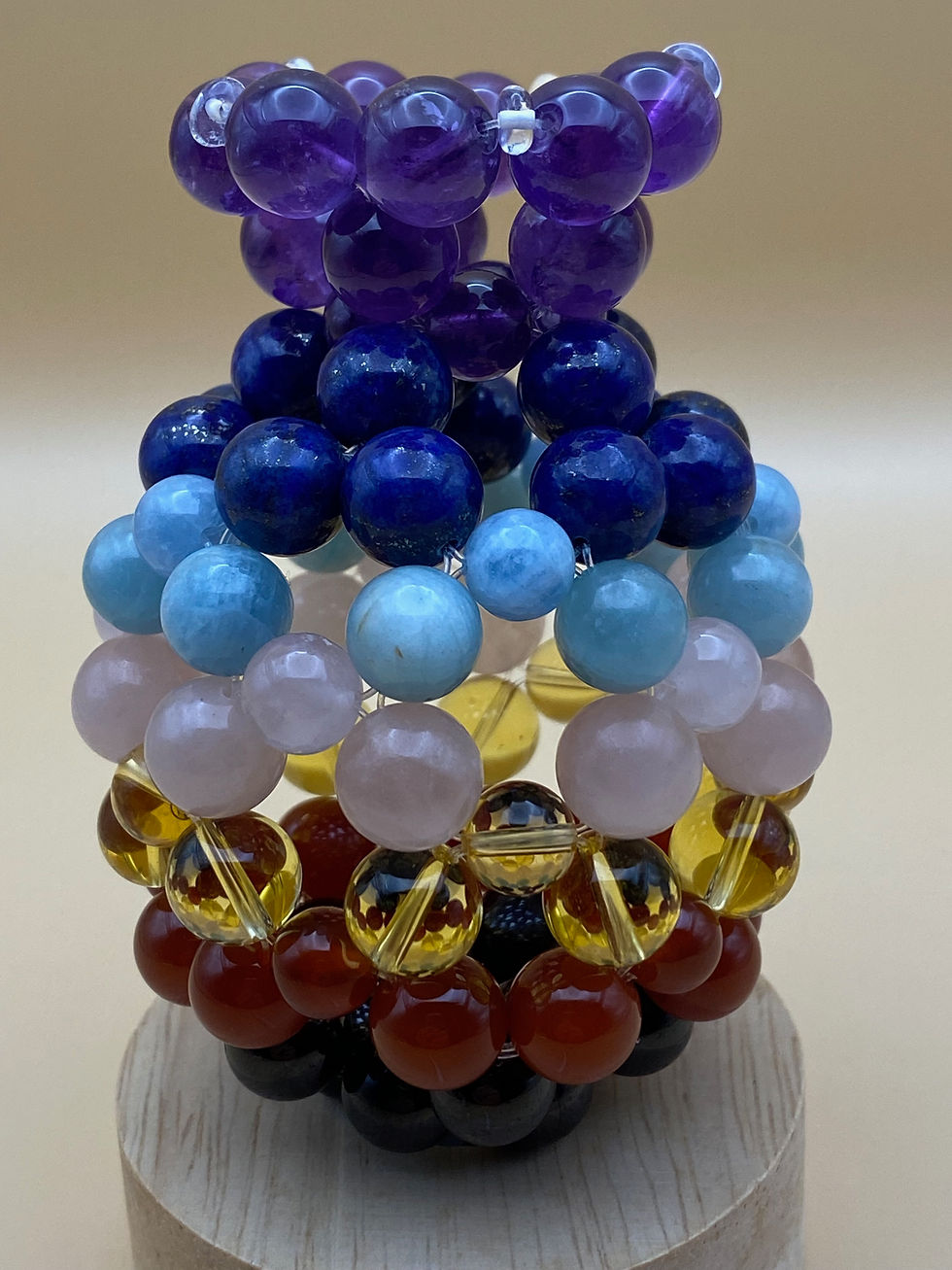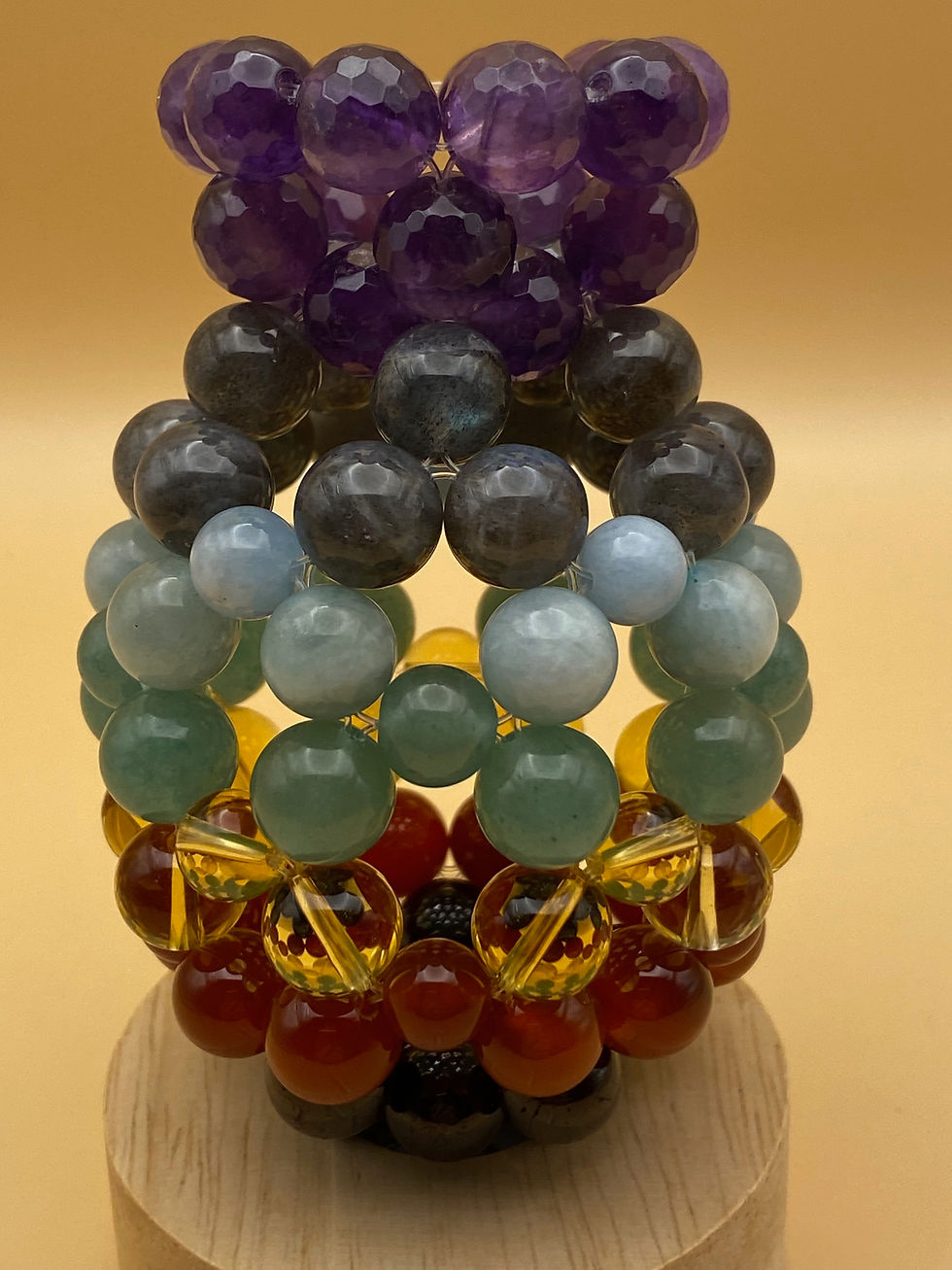 An intricately woven pineapple-shaped bead creation, adorned with a spectrum of colors representing the numerous chakra energies. This unique masterpiece serves as a captivating and symbolic focal point for personal meditation, aligning the chakra colors to promote balance, harmony, and spiritual alignment. As the beads intertwine in the shape of a pineapple, it invites a sense of tropical tranquility, grounding the meditator and fostering a connection with both the vibrant energy of the chakras and the serene essence of a tropical retreat. …